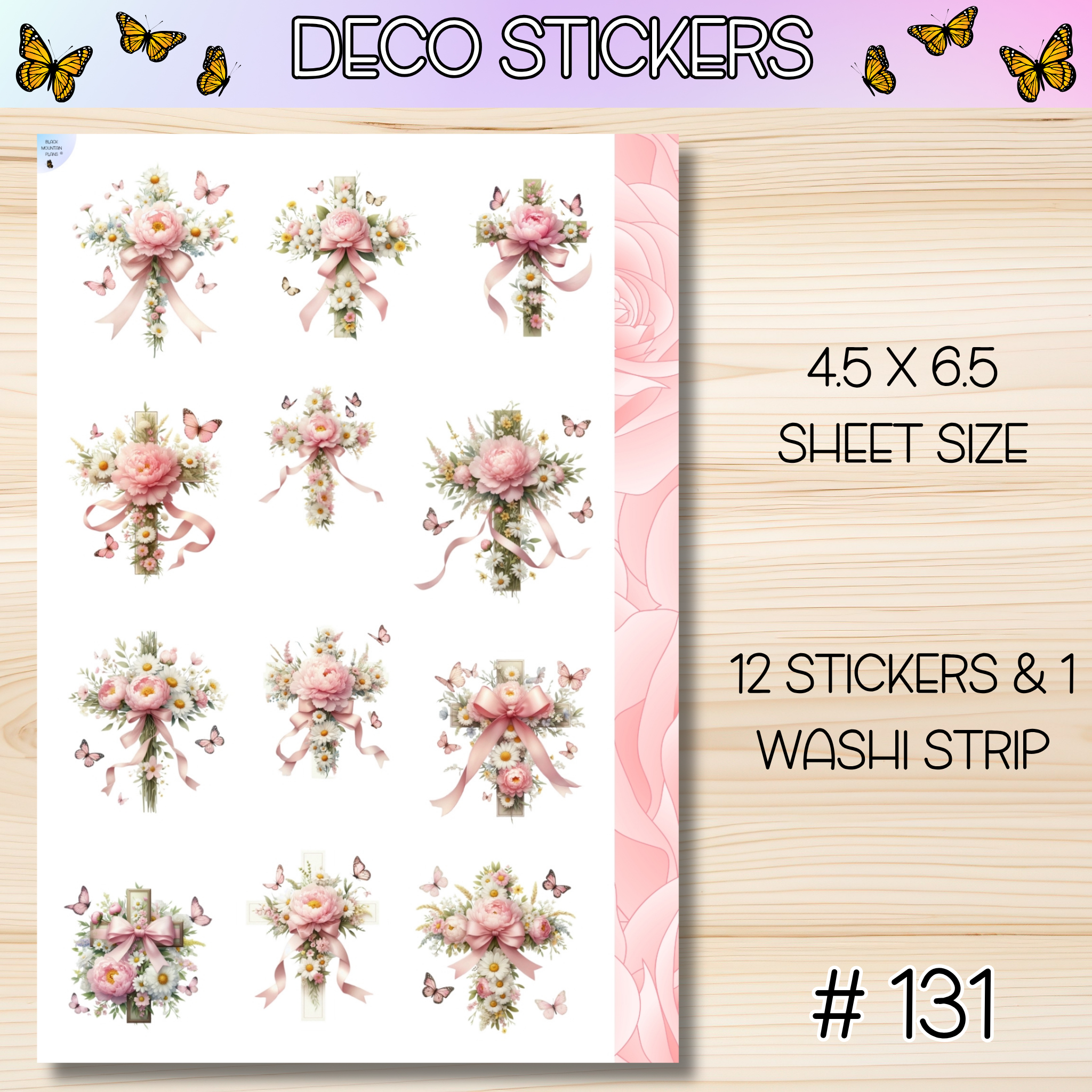 These deco stickers are perfect for adding to your daily pages, bible journaling or planner. Each sheet comes with deco and one coordinating washi strip. Each sheet size is sized at 4.5 x 6.5.
