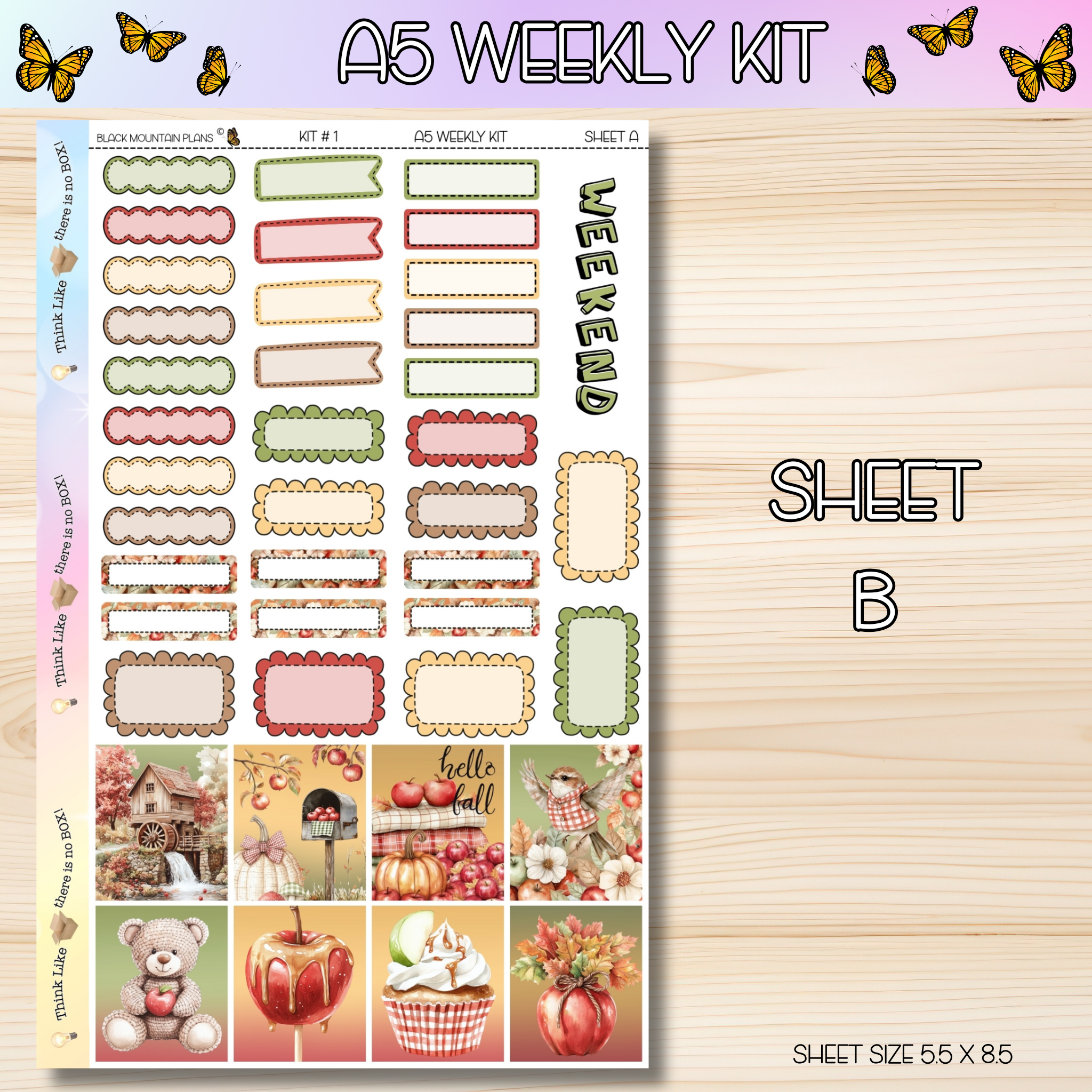 Stickers are perfectly sized to fit the A5 DATED Weekly inserts. Sheet sizes are 5.5 x 8.5. More labels can be found in the A5 add on section of the website. Each sheet comes unpunched unless otherwise noted when placing your order.