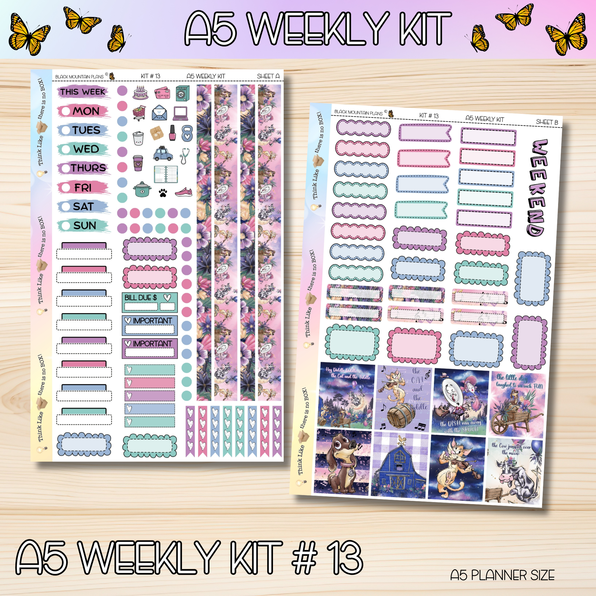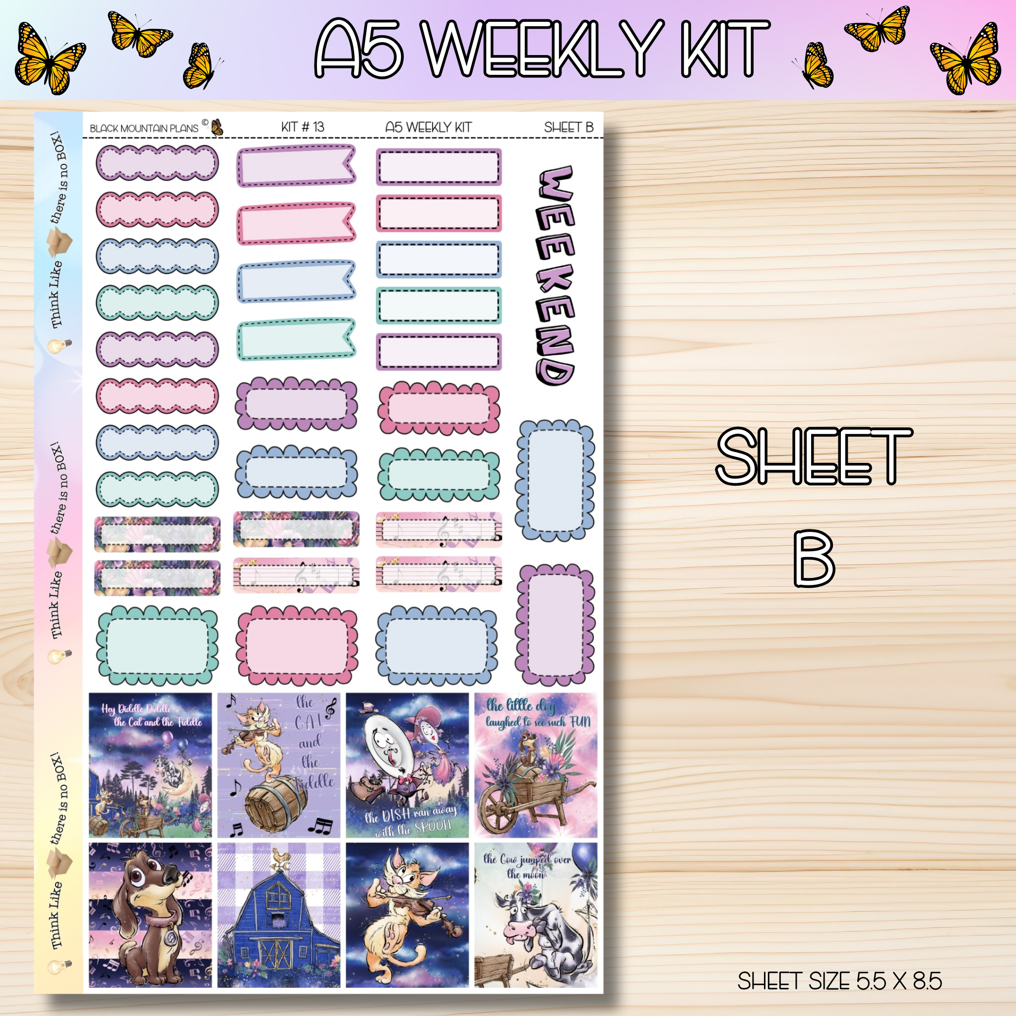 Stickers are perfectly sized to fit the A5 DATED Weekly inserts. Sheet sizes are 5.5 x 8.5. More labels can be found in the A5 add on section of the website. Each sheet comes unpunched unless otherwise noted when placing your order.