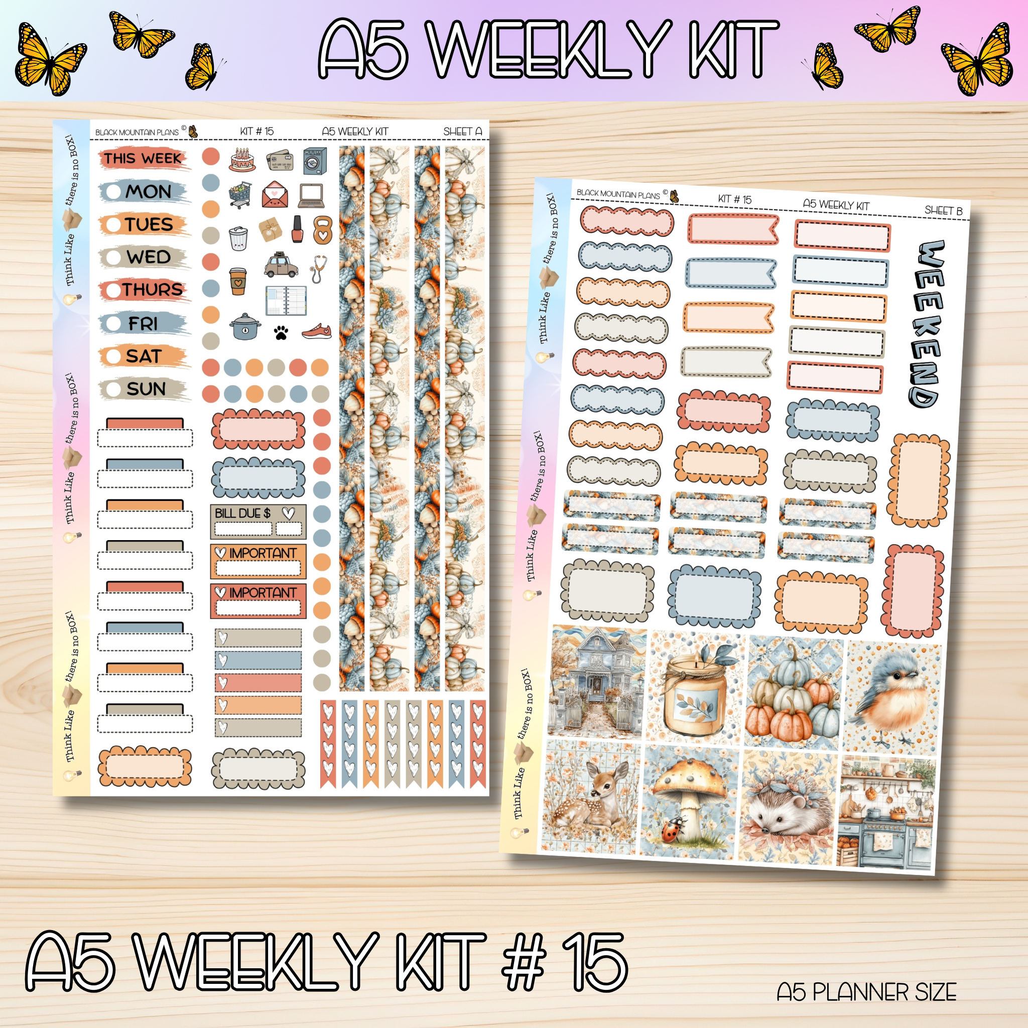 Stickers are perfectly sized to fit the A5 DATED Weekly inserts. Sheet sizes are 5.5 x 8.5. More labels can be found in the A5 add on section of the website. Each sheet comes unpunched unless otherwise noted when placing your order.