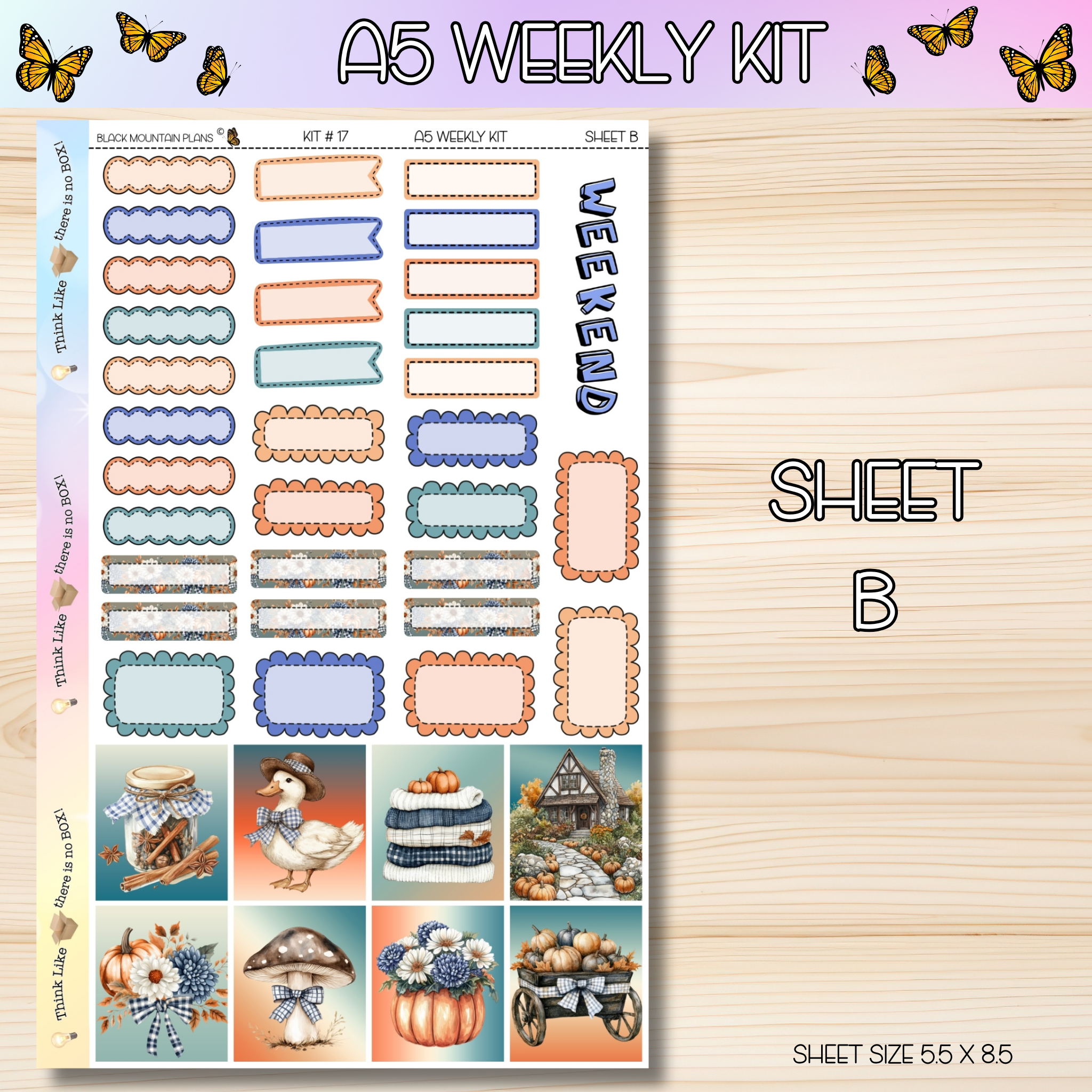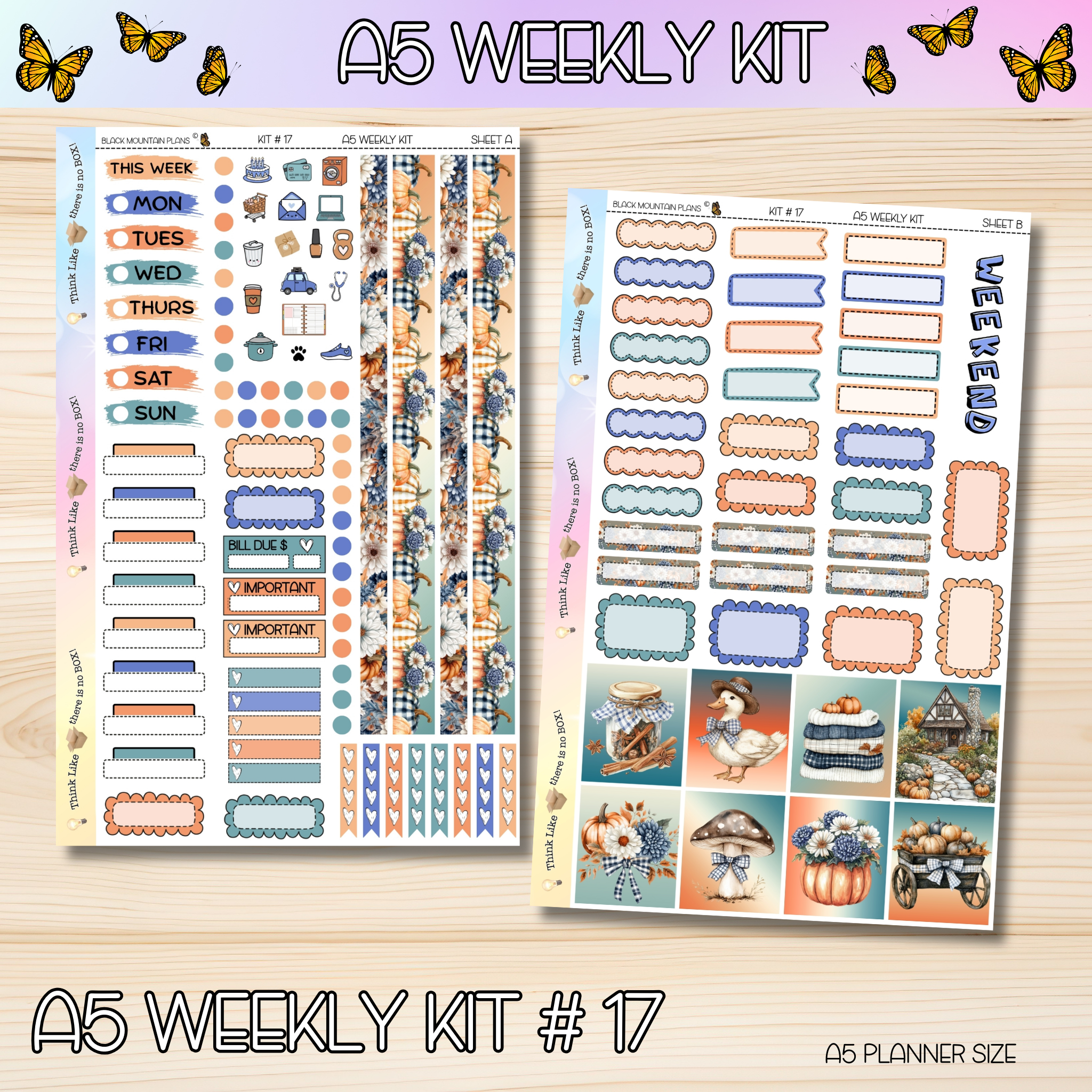 Stickers are perfectly sized to fit the A5 DATED Weekly inserts. Sheet sizes are 5.5 x 8.5. More labels can be found in the A5 add on section of the website. Each sheet comes unpunched unless otherwise noted when placing your order.