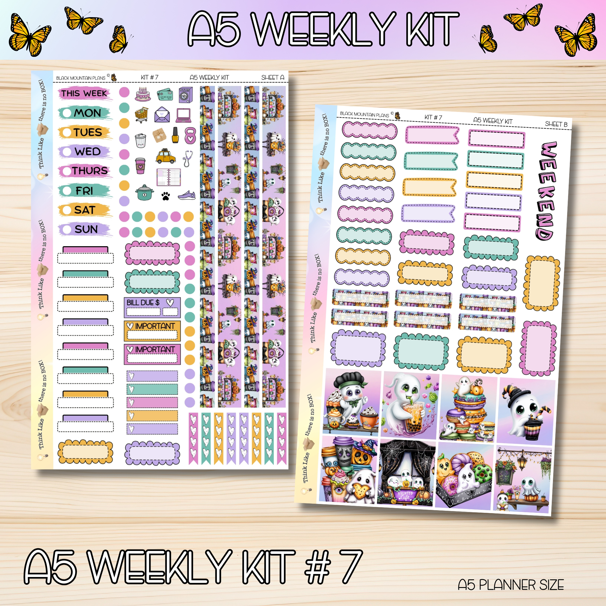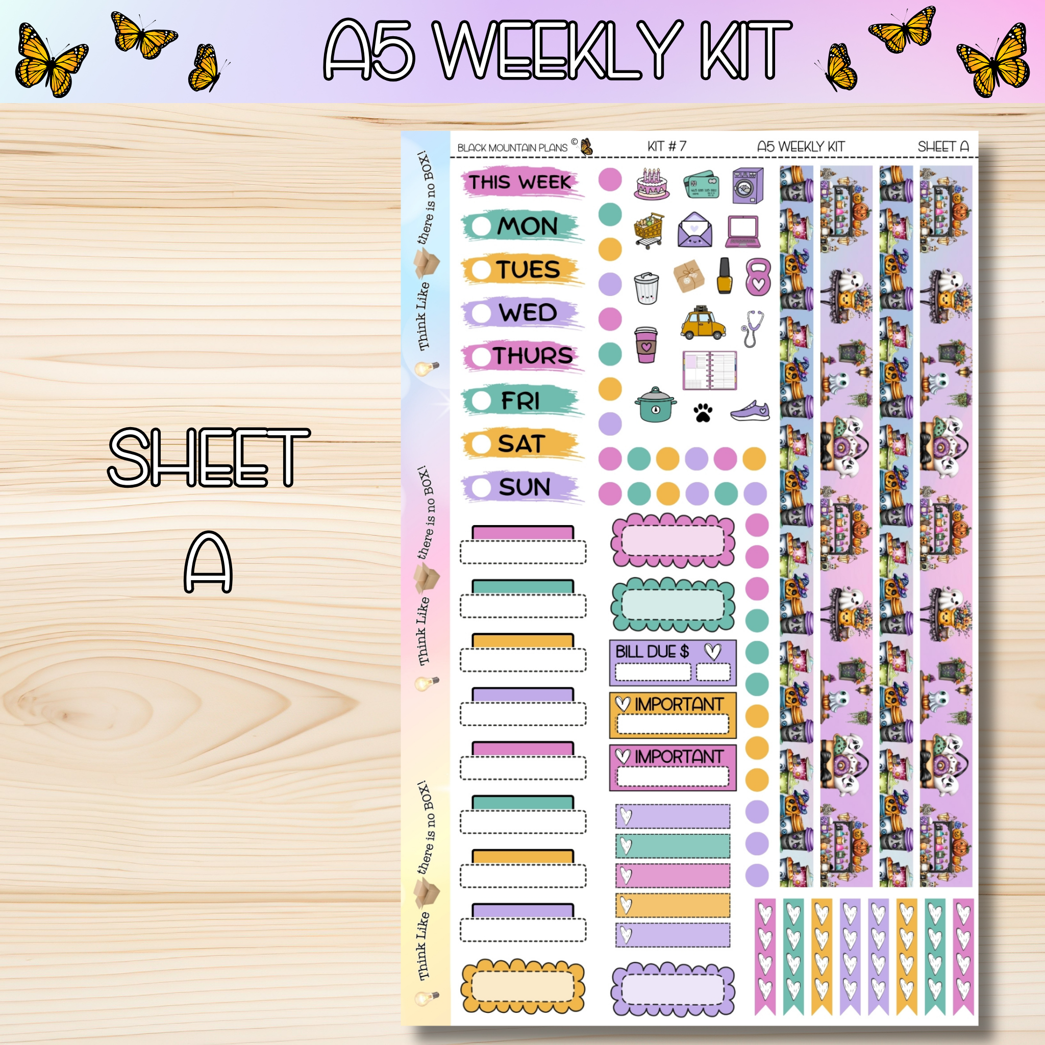 Stickers are perfectly sized to fit the A5 DATED Weekly inserts. Sheet sizes are 5.5 x 8.5. More labels can be found in the A5 add on section of the website. Each sheet comes unpunched unless otherwise noted when placing your order.