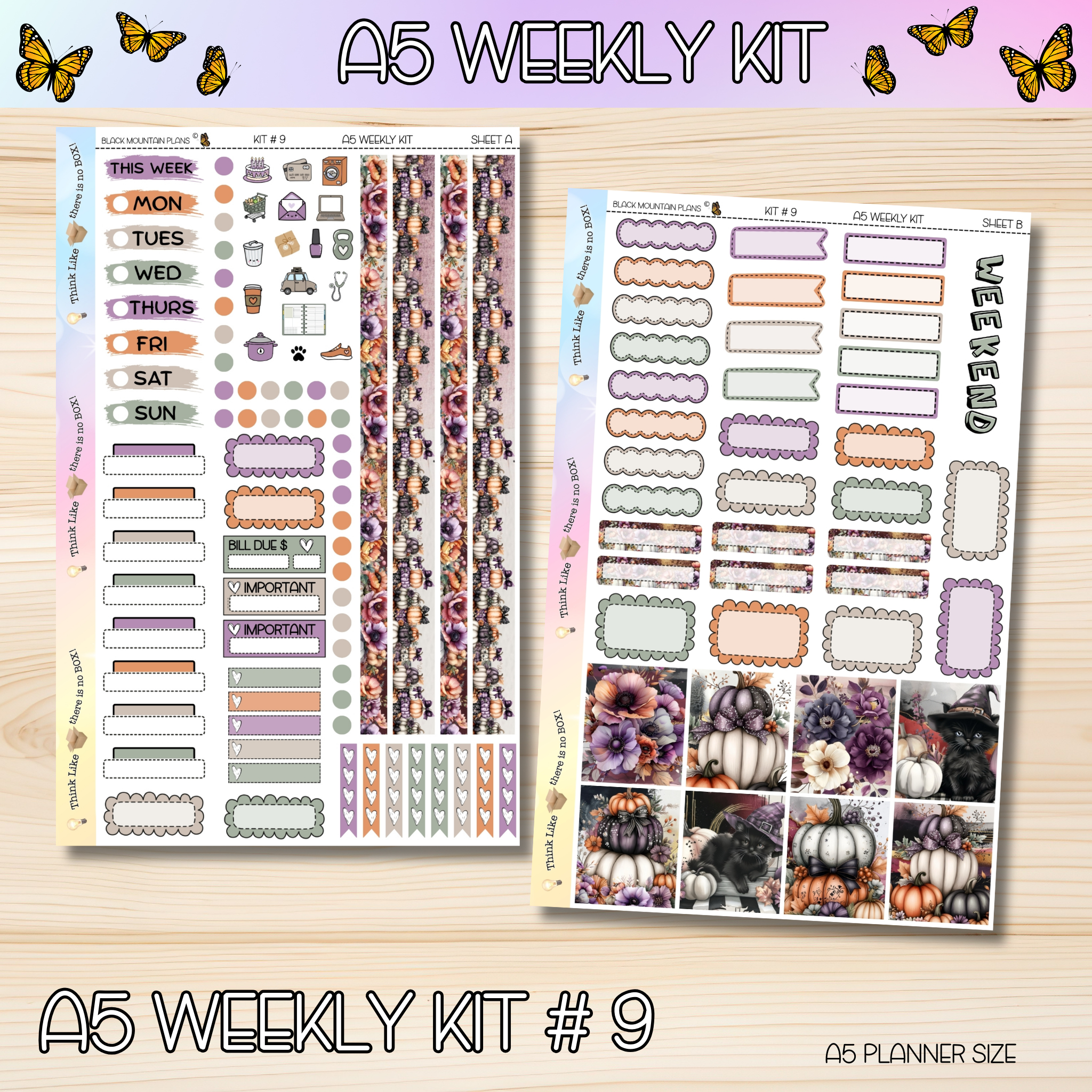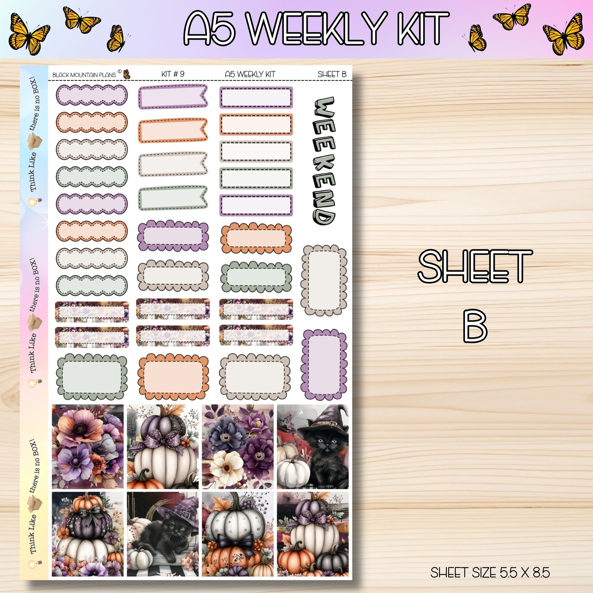 Stickers are perfectly sized to fit the A5 DATED Weekly inserts. Sheet sizes are 5.5 x 8.5. More labels can be found in the A5 add on section of the website. Each sheet comes unpunched unless otherwise noted when placing your order.