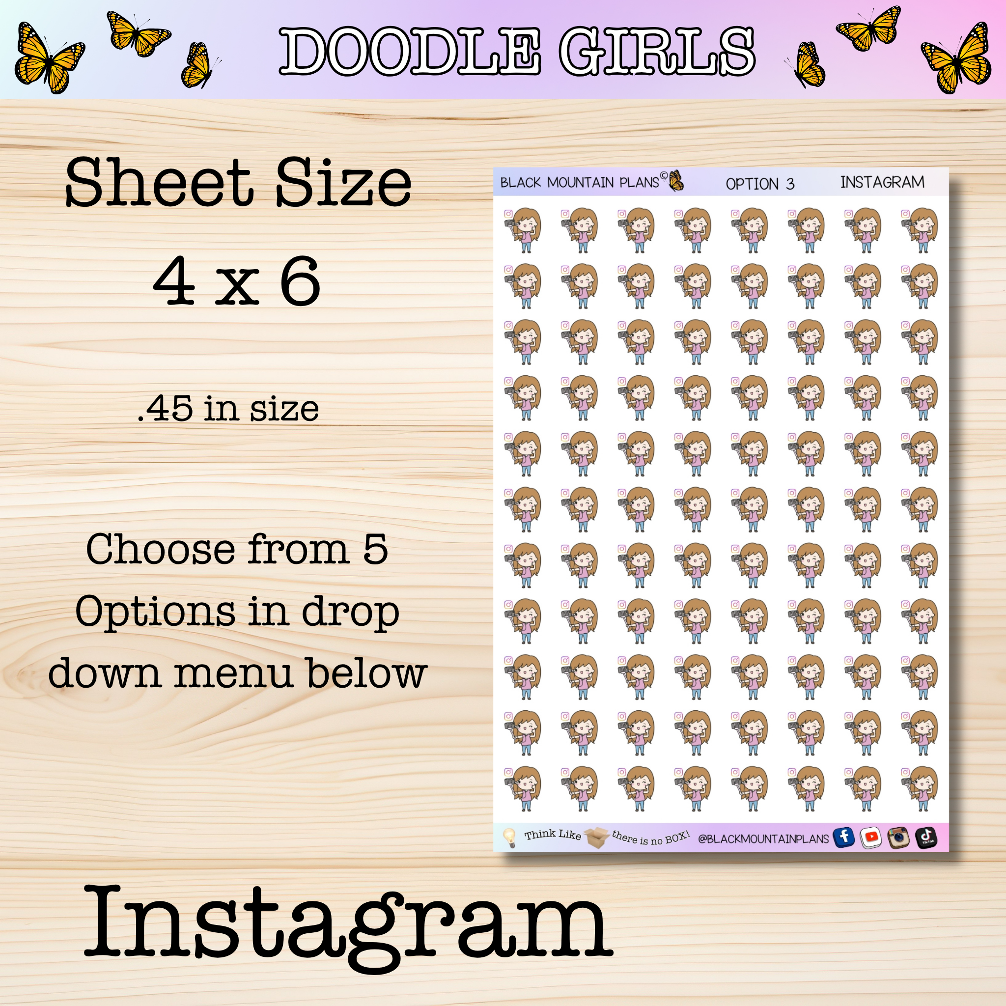 These Doddle Girl stickers are perfect for using in your weekly spreads, bullet journals, lunch notes, notebooks or journals. Icons are sold on 4 x 6 sheets and are .45 inches tall and perfectly universal for all planner sizes.