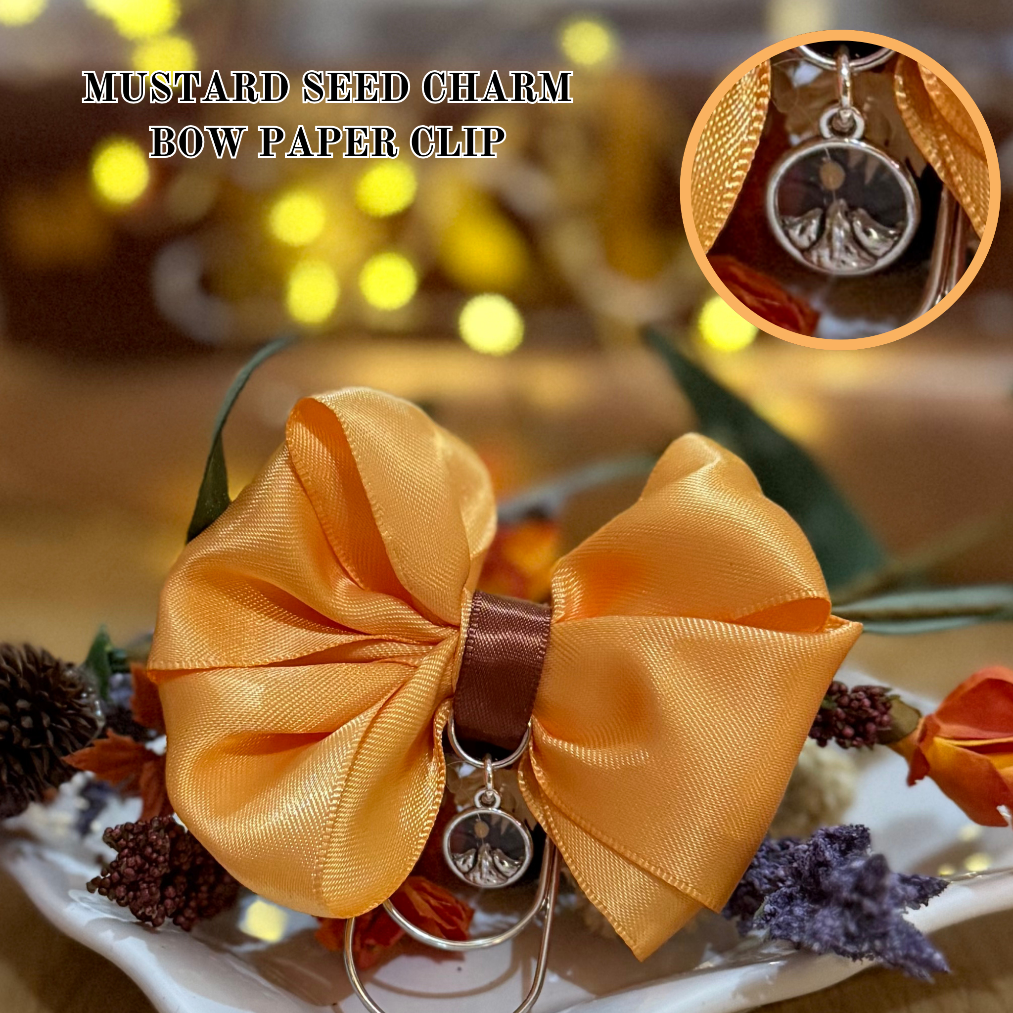 Silver Faith of a Mustard Seed Charm Triple Layer Satin Bow Planner Clip
