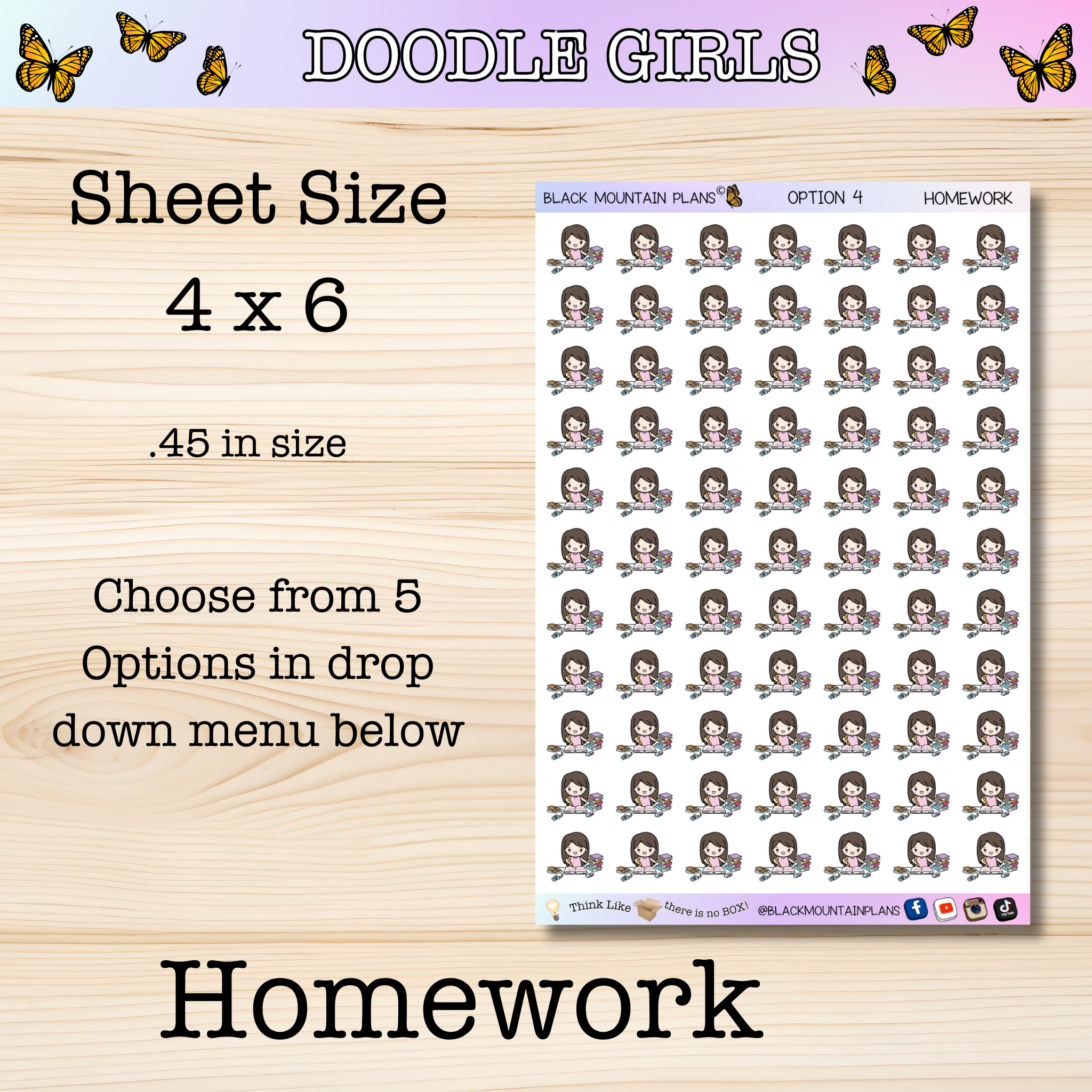 These Doddle Girl stickers are perfect for using in your weekly spreads, bullet journals, lunch notes, notebooks or journals. Icons are sold on 4 x 6 sheets and are .45 inches tall and perfectly universal for all planner sizes.