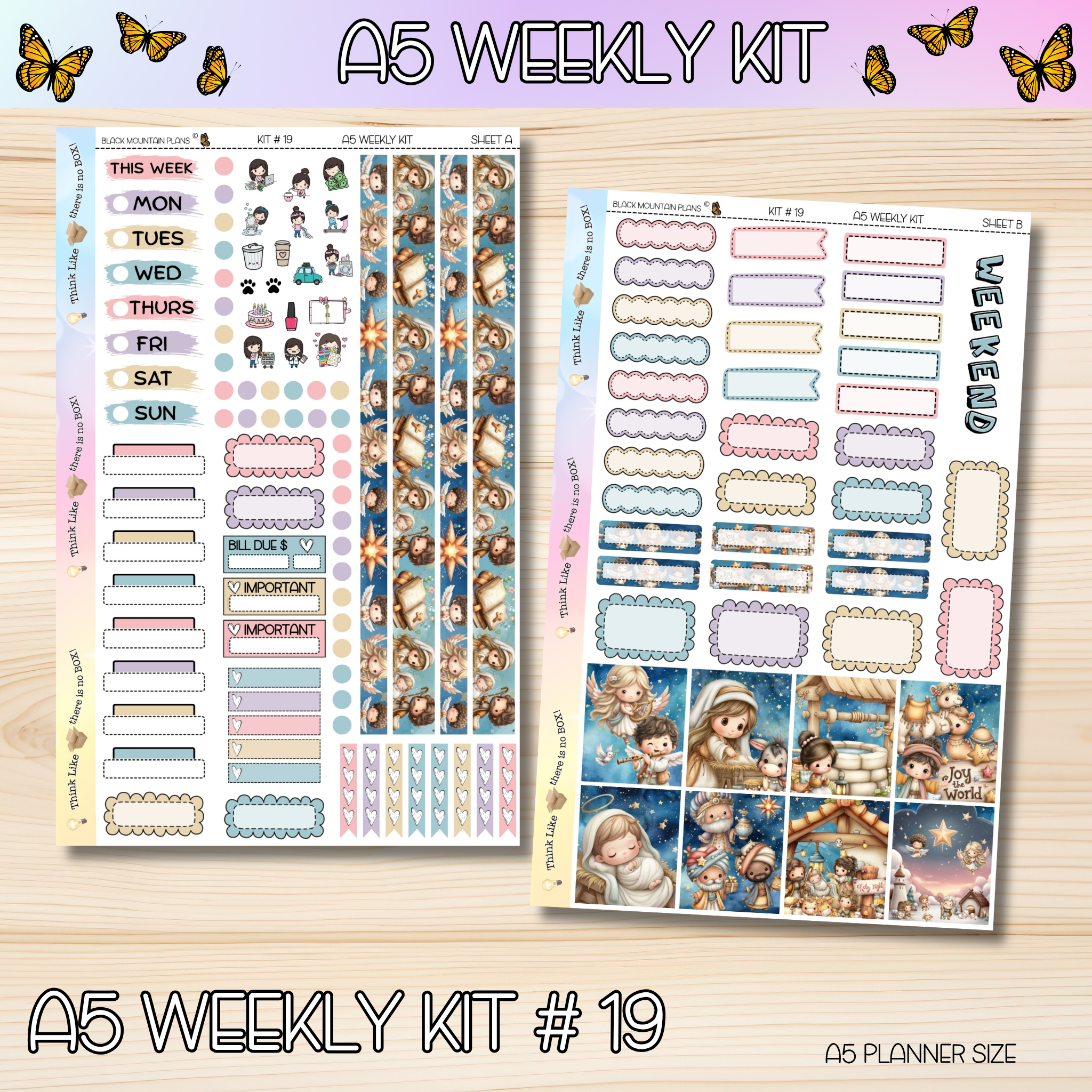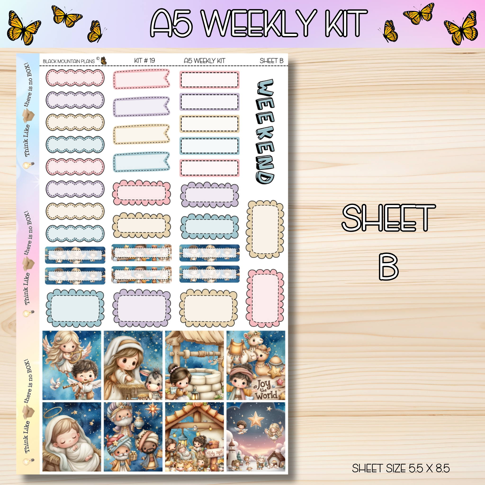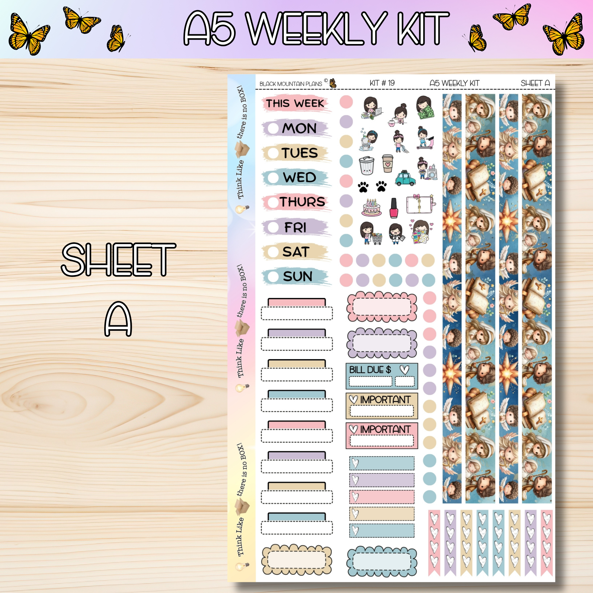 Stickers are perfectly sized to fit the A5 DATED Weekly inserts. Sheet sizes are 5.5 x 8.5. More labels can be found in the A5 add on section of the website. Each sheet comes unpunched unless otherwise noted when placing your order.