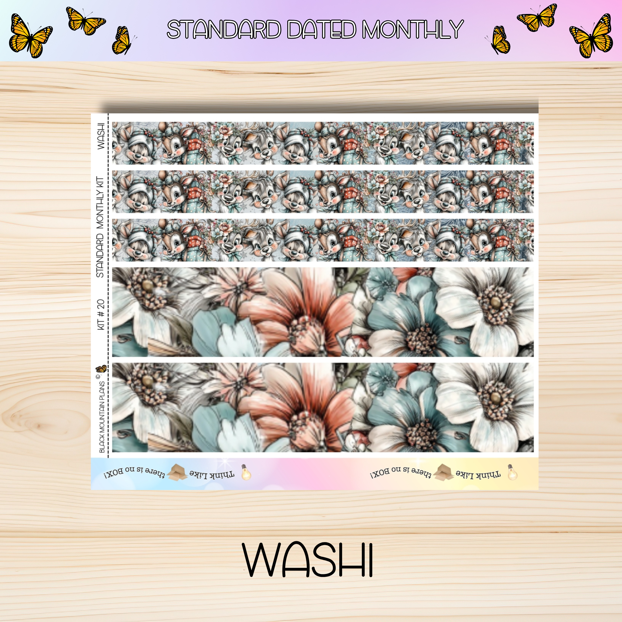 Stickers are perfectly sized to fit the Standard DATED Monthly inserts. Sheet sizes are 5.5 x 8.5 and 5.5 x 6.58 for the washi sheet. Choose from a functional monthly sidebar or a decorative one.