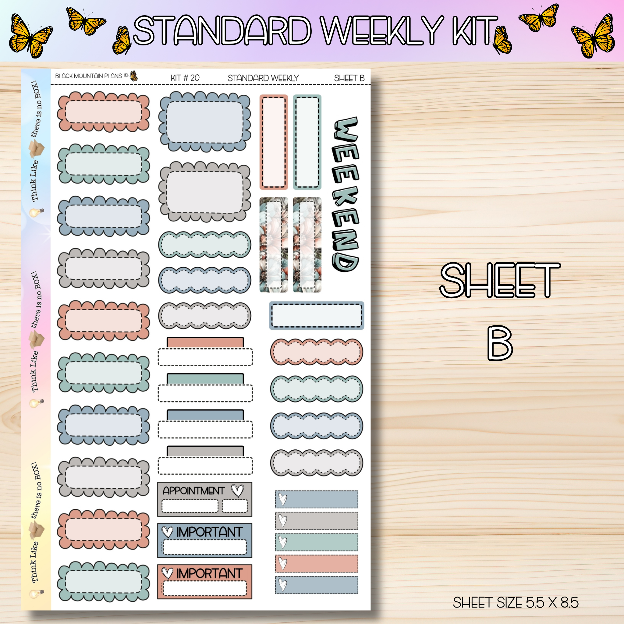 Stickers are perfectly sized to fit the Standard DATED Weekly inserts. Sheet sizes are 5.5 x 8.5. More labels can be found in the standard add on section of the website. Each sheet comes unpunched unless otherwise noted when placing your order.