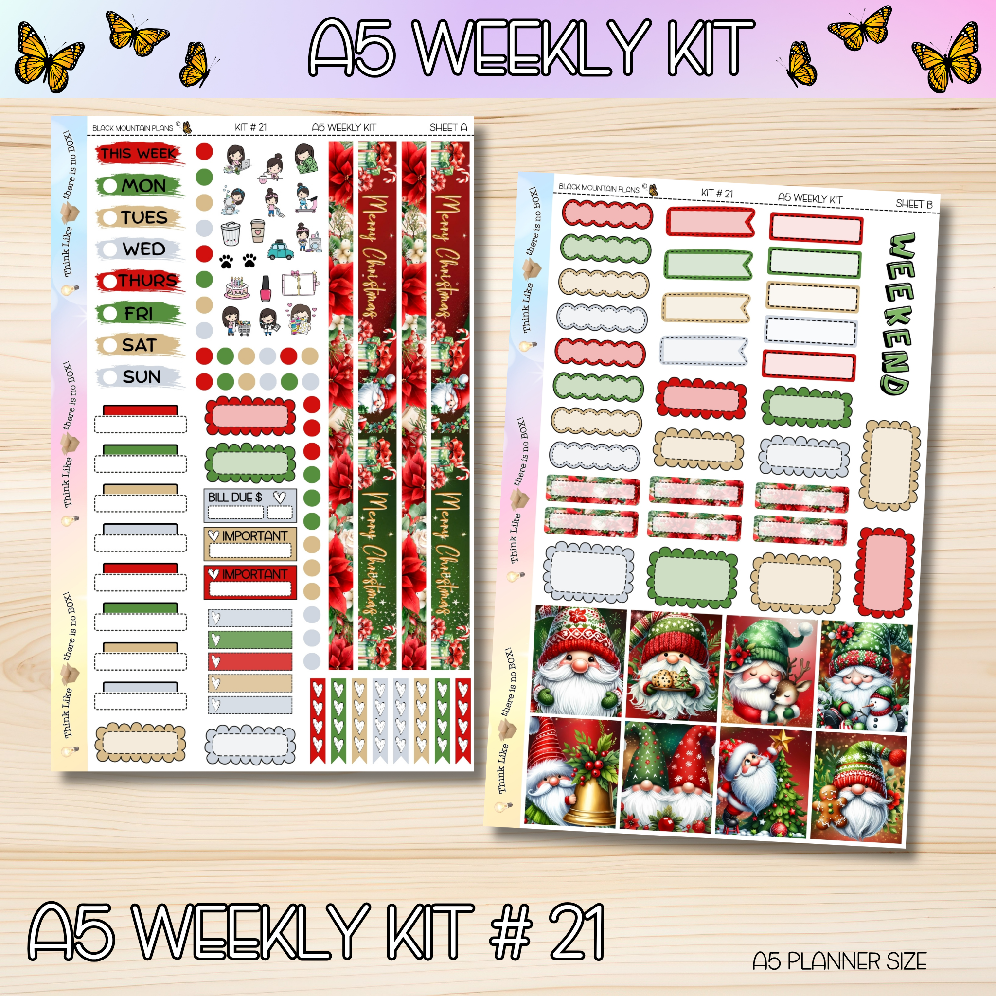 Stickers are perfectly sized to fit the A5 DATED Weekly inserts. Sheet sizes are 5.5 x 8.5. More labels can be found in the A5 add on section of the website. Each sheet comes unpunched unless otherwise noted when placing your order.