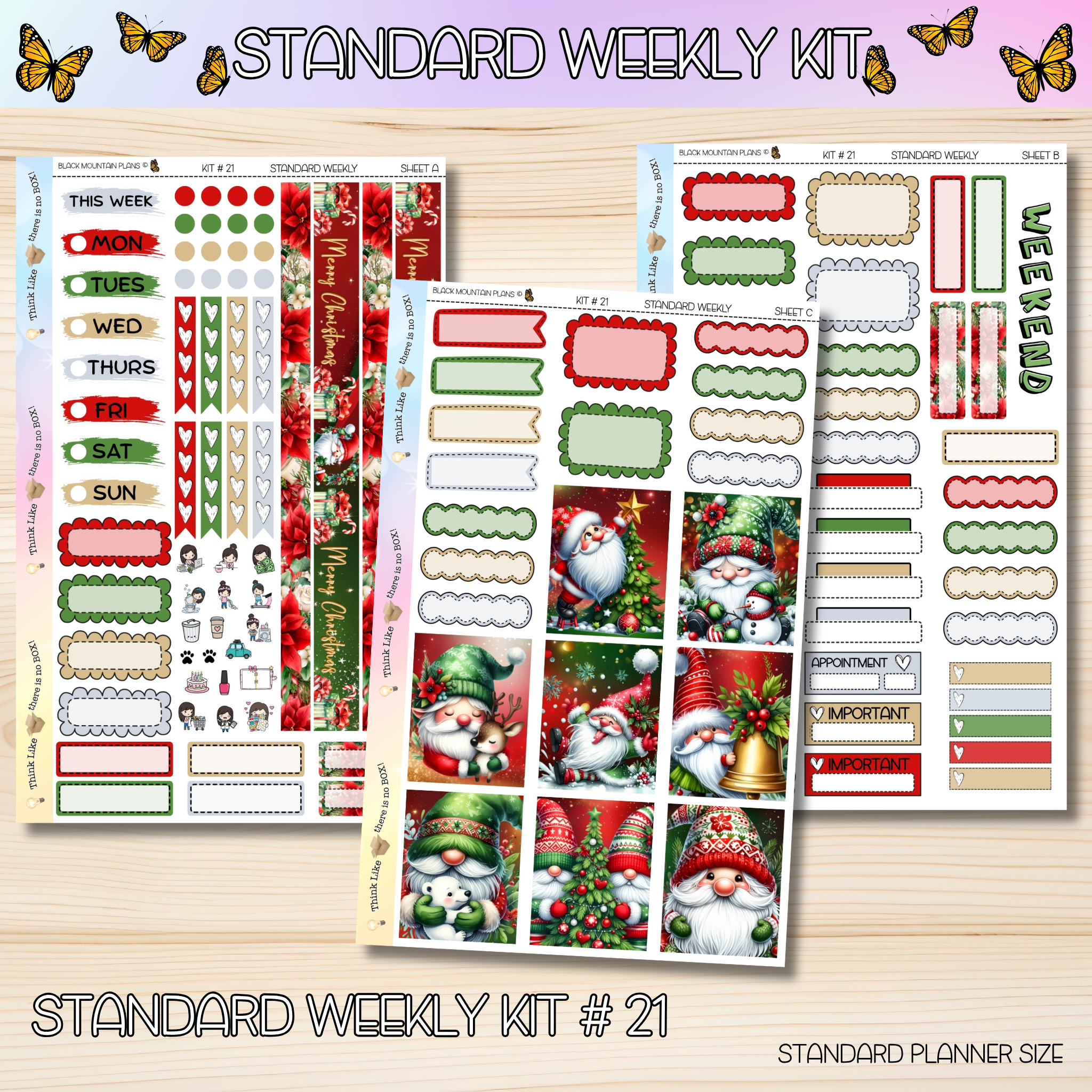 Stickers are perfectly sized to fit the Standard DATED Weekly inserts. Sheet sizes are 5.5 x 8.5. More labels can be found in the standard add on section of the website. Each sheet comes unpunched unless otherwise noted when placing your order.